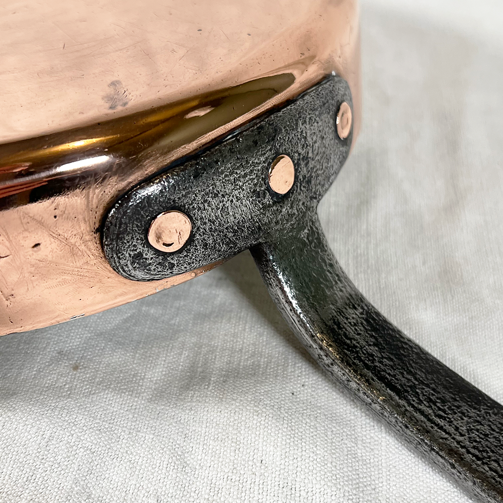 A rare form, and a great example of French specificity. The ultra low profile of this pan makes it perfect for broiling meats or veg in a salamander oven.